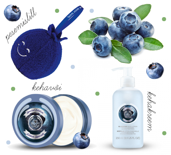 Mustikas on üks ütlemata mõnus mari, millest mitte kuidagi isu täis ei saa. Mustikahooaeg on nii lühike, et ei jõua õieti nautimagi hakata, kui juba tuleb sinine suu neist puhtaks pühkida. :) Vähemasti mustika lõhna saame nautida aasta ringi, sest The Body Shop on selle mõnusa suvise aroomi kinni püüdnud ja topsidesse-pudelitesse susanud. Mustikalõhnalisi tooteid on The Body Shop´is ennegi müüdud, kuid nüüd on sinna lisandunud uusi lahedaid tulijaid. Minul oli võimalus testida kehakoorijat ja huulevõiet. Dušigeeli võtsin ka pildile, kuigi see nii uus enam ei ole, aga väärt tutvustamist ikka.