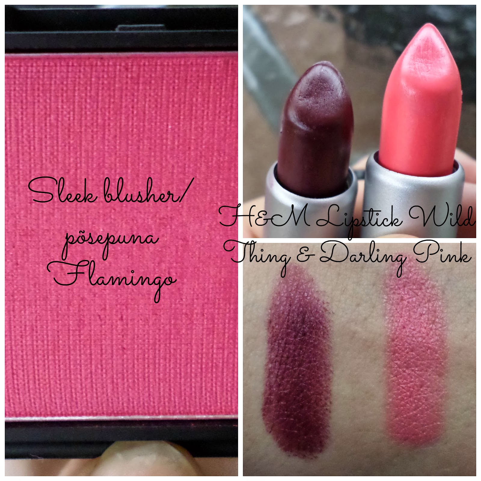 First I applied Elf primer all over the eyelids, then I took Sleeks palette Oh So Special and used the shadow Gateau all over the moving part of my eyelid and also half way into the crease. Into the crease area on the outer part I used Pamper from the same palette to blend the edge of Gateau and also use it as a crease color. I deepened the outer corner of my eye and also a bit of the outer crease with Celebrate. On the bottom waterline I used Master Smoky pencil in Smoky Black and smudged Celebreate on the lower lashline as a thick line. Into the inner corner of the bottom lid I put Gateau. I lined my top lashline with Wet n Wild's Superliner and the lashes are from H&M. I used Bow as my browbone highlight. On my face I used MUA Fashionista Matte primer, Misha BB cream and I contoured my cheeks with Wet n Wild Mega Mix bronzer in Sun Kissed. I used a bit of Sleek blusher in Flamingo and the highlight is Elf's Luminance. On my lips I used a combo of H&M lipsticks in Darling Pink and Wild Thing. I'm wearing Accessorize Volumising mascara on my bottom lashes.