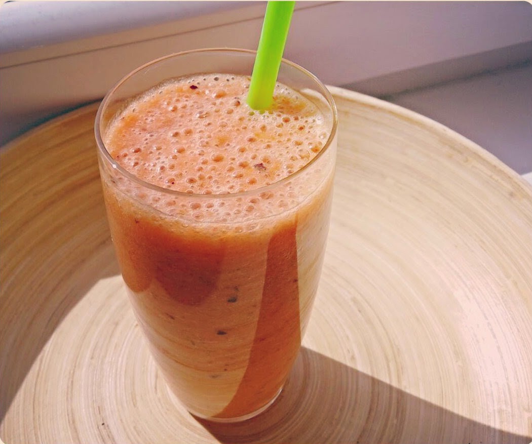 Selle maitsva smuuti tegemiseks läheb sul vaja ühte külmutatud banaani,porgandi mahla,värsket või külmutatud mango kuubikuid.Mina eelistan värsket kuna külmutatud omadel on imelik maitse, maasikaid ja datleid.Kuna mul oli veel üks ploom kodus,siis panin selle ka sinna hulka.Ja kui datlite lisamiseks läheb siis pane ainult 1-2 ,mina panin mingi 5 ja oii kui magus tuli. Kes tahab võib veel chia seemneid ka juurde lisada:)