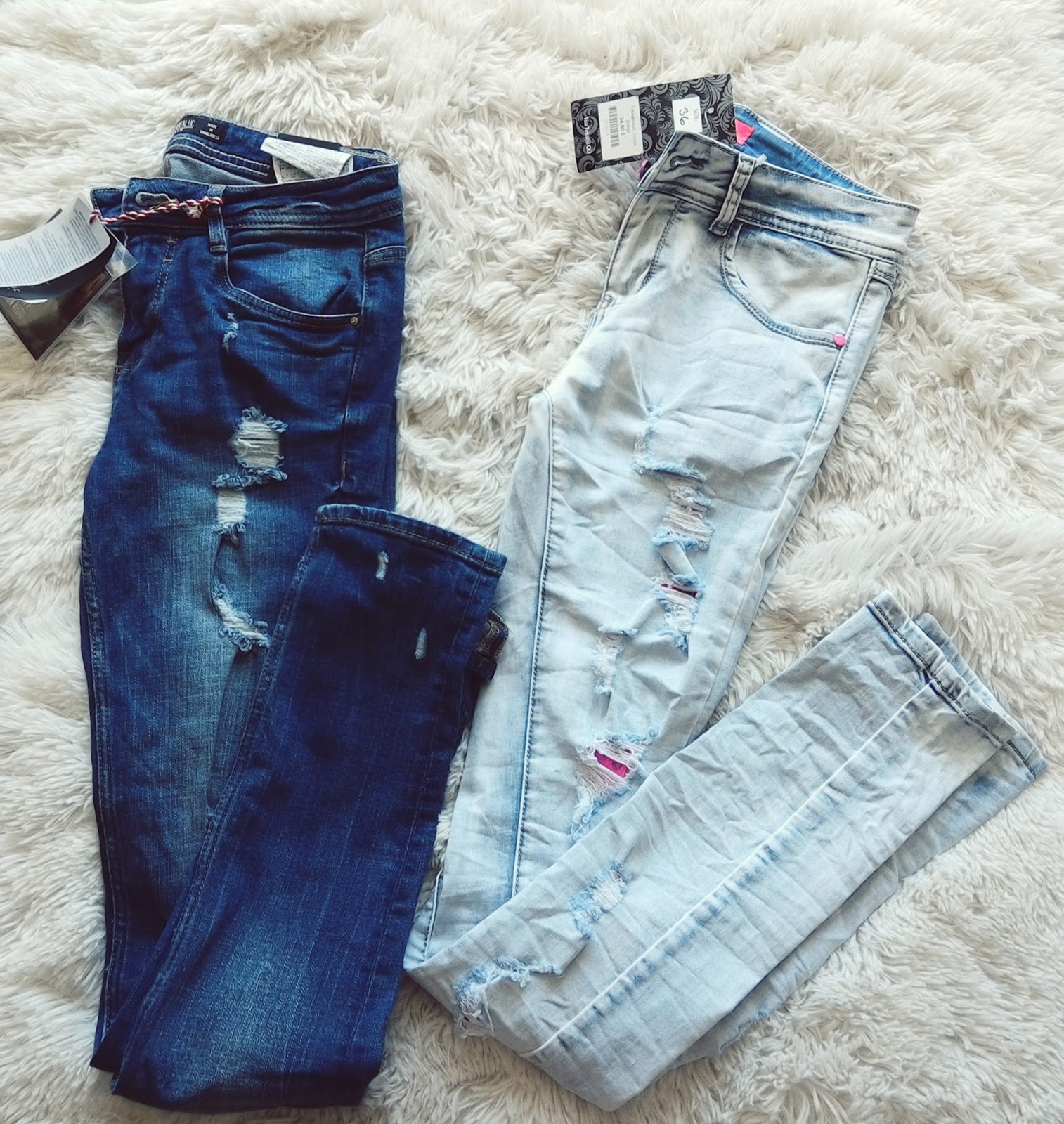 Then i still wanted more,because i pictured light jeans on my mind.Out of curiosity ,i went to this S1 store and voilaa-the first thing that i saw was these light blue skinny jeans with pink lace in it! I was so happy when they fit and the price was 32€. Now i think that ripped boyfriend jeans would look nice...:)