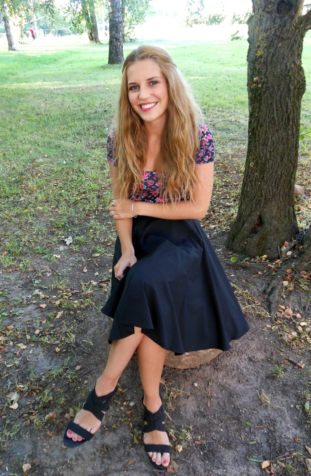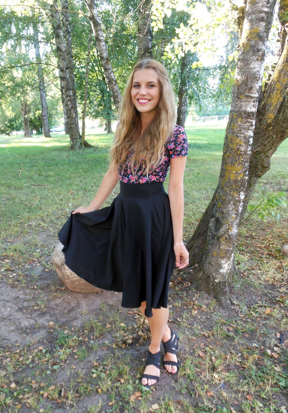 Täna toon teieni ühe vinge seeliku, mis saabus minuni Romwe'st. Seelikupikkus pole üldsegi harilik ning pigem läheb minu meelest retrolõikeliste rõivaste hulka. Materjal on väga kerge, lendlev ja mõnus, st et pole tuntavalt sünteetiline ning samuti laseb ilusti tuult läbi, kuid jällegi tuult alla ei võta. Seeliku all on ka nendeks "piinlikeks juhtumiteks" igaks juhuks alusriie, mis ei lase seelikul nabani tõusta. Ning õnneks istub mulle seelik ümber talje perfektselt - kartsin, et tuleb üks kahest, kas liiga suur või liiga väike. Nüüd aga fotosüüdistus minu tänasest outfitist: