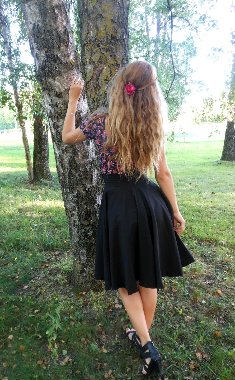 Täna toon teieni ühe vinge seeliku, mis saabus minuni Romwe'st. Seelikupikkus pole üldsegi harilik ning pigem läheb minu meelest retrolõikeliste rõivaste hulka. Materjal on väga kerge, lendlev ja mõnus, st et pole tuntavalt sünteetiline ning samuti laseb ilusti tuult läbi, kuid jällegi tuult alla ei võta. Seeliku all on ka nendeks "piinlikeks juhtumiteks" igaks juhuks alusriie, mis ei lase seelikul nabani tõusta. Ning õnneks istub mulle seelik ümber talje perfektselt - kartsin, et tuleb üks kahest, kas liiga suur või liiga väike. Nüüd aga fotosüüdistus minu tänasest outfitist: